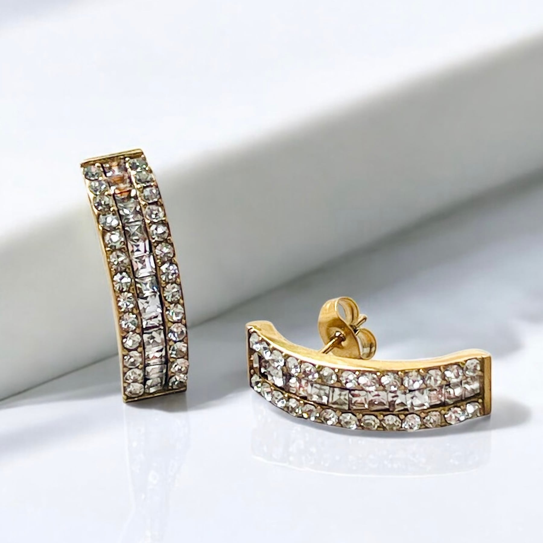 イヤリング/ピアス 対応◇金属アレルギー対応 CZ ダイヤモンド Cライン デザイン /316L サージカルステンレス
