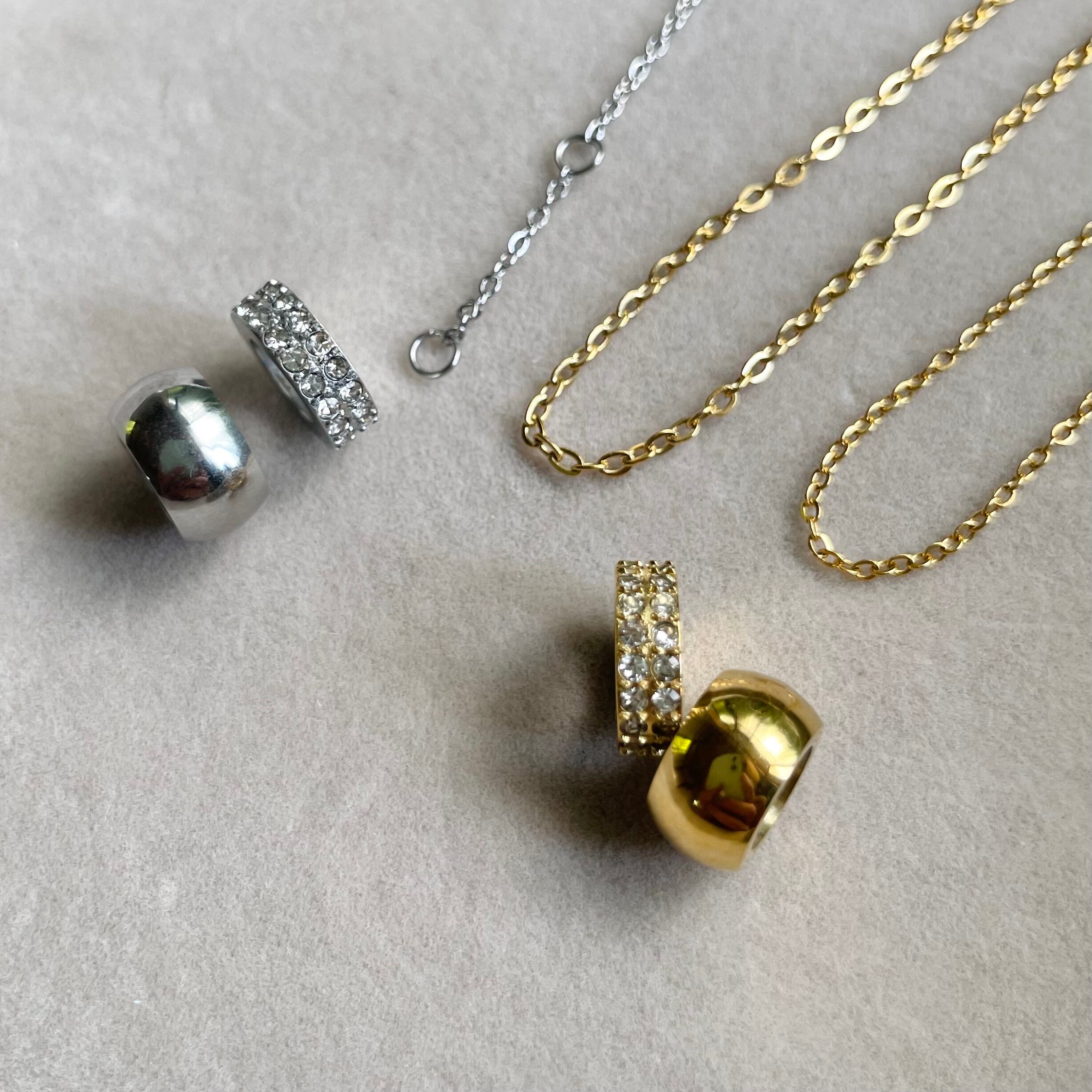 2way◇CZ ダイヤ Wリング ネックレス 金属アレルギー対応 サージカルステンレス