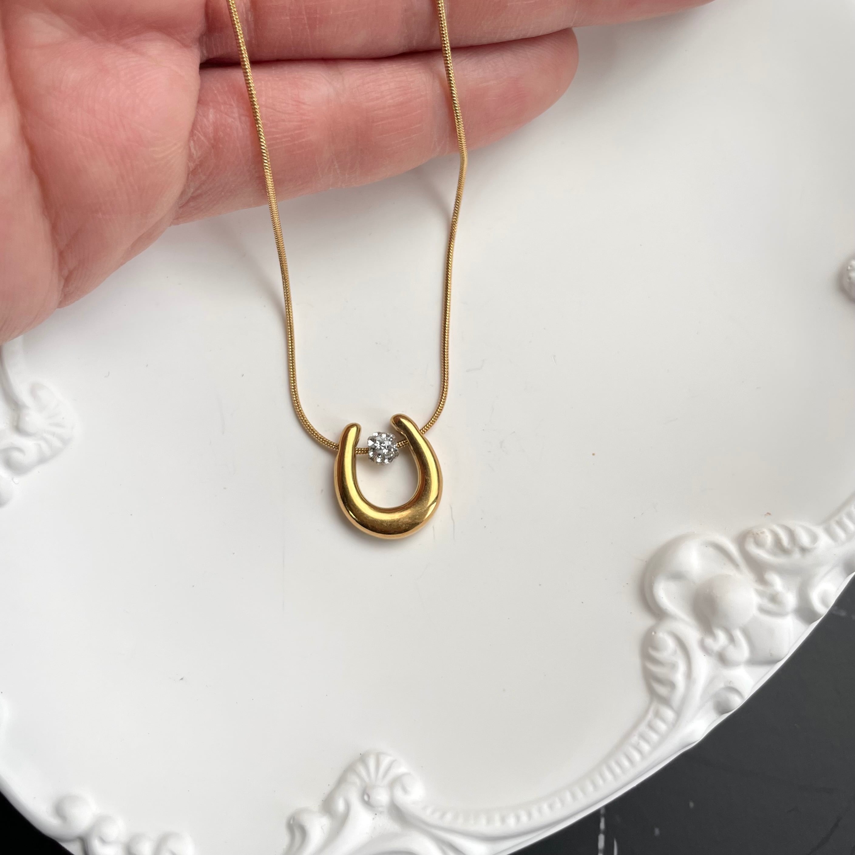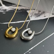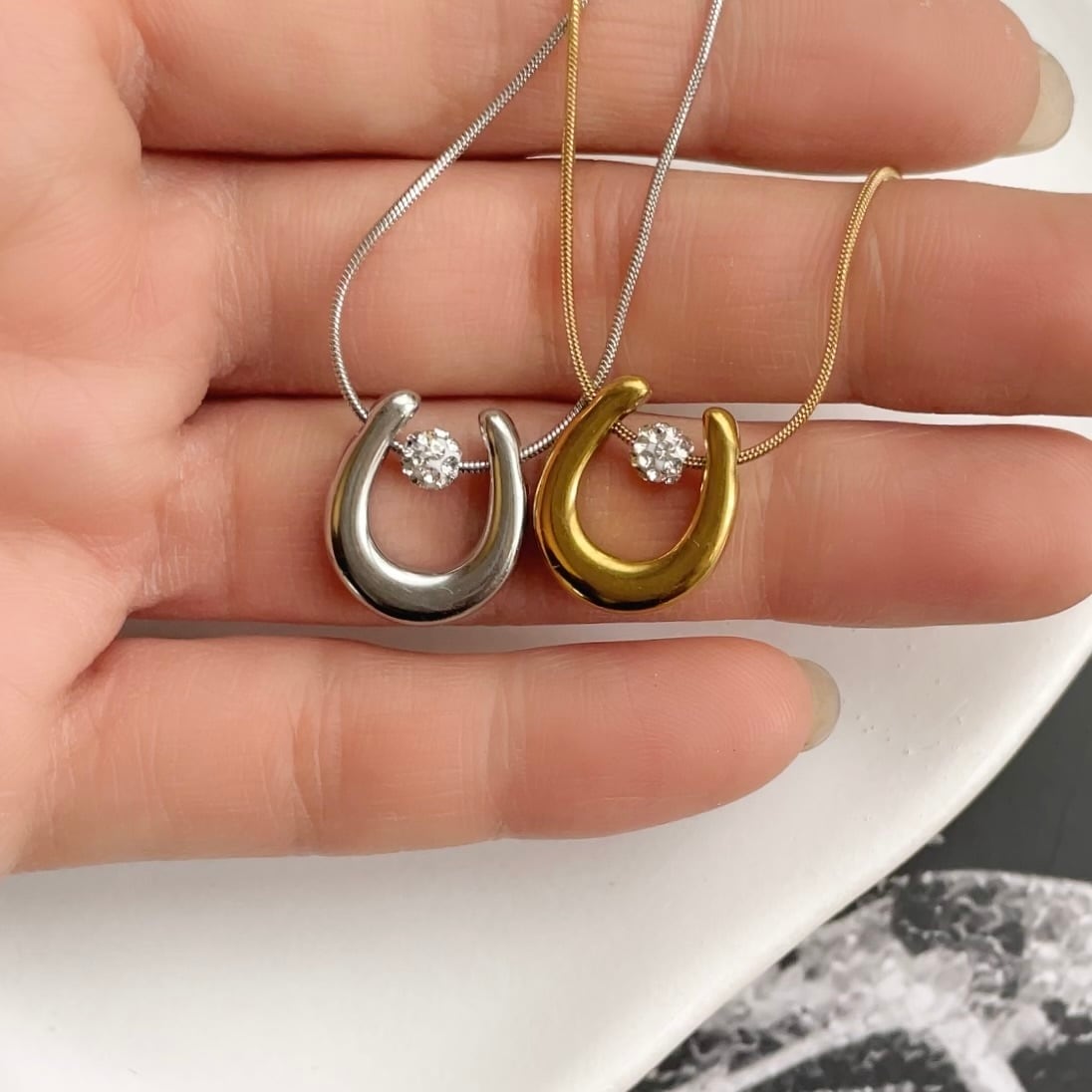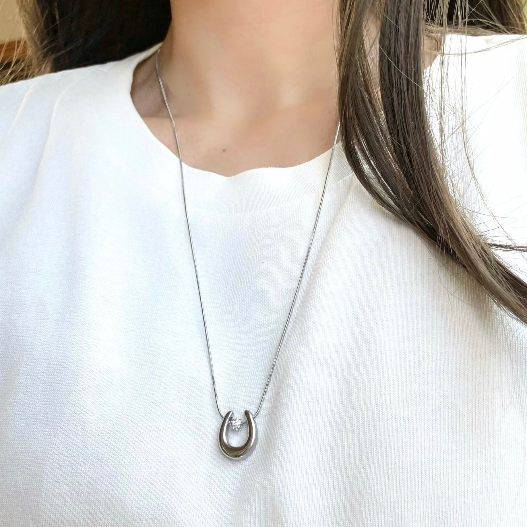 ホースシュー+パヴェCZダイヤ 大人の ダンシングストーン ネックレス 金属アレルギー対応 サージカルステンレス
