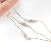 大人の 華奢 パヴェ ネックレス /ベビーパール+モルガナイト+CZ パヴェ ダイヤ 金属アレルギー対応 サージカルステンレス