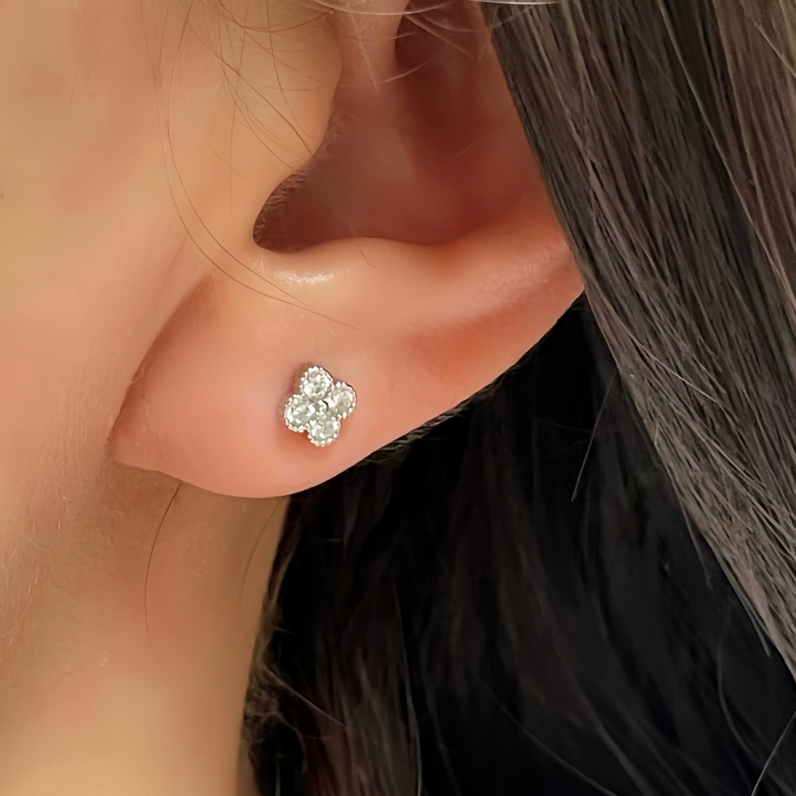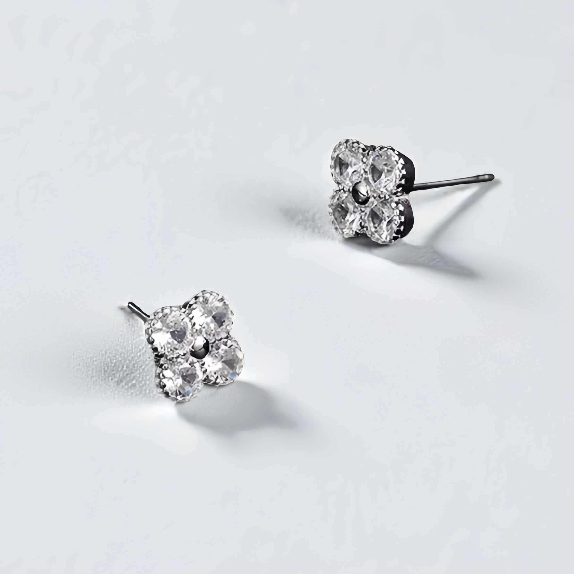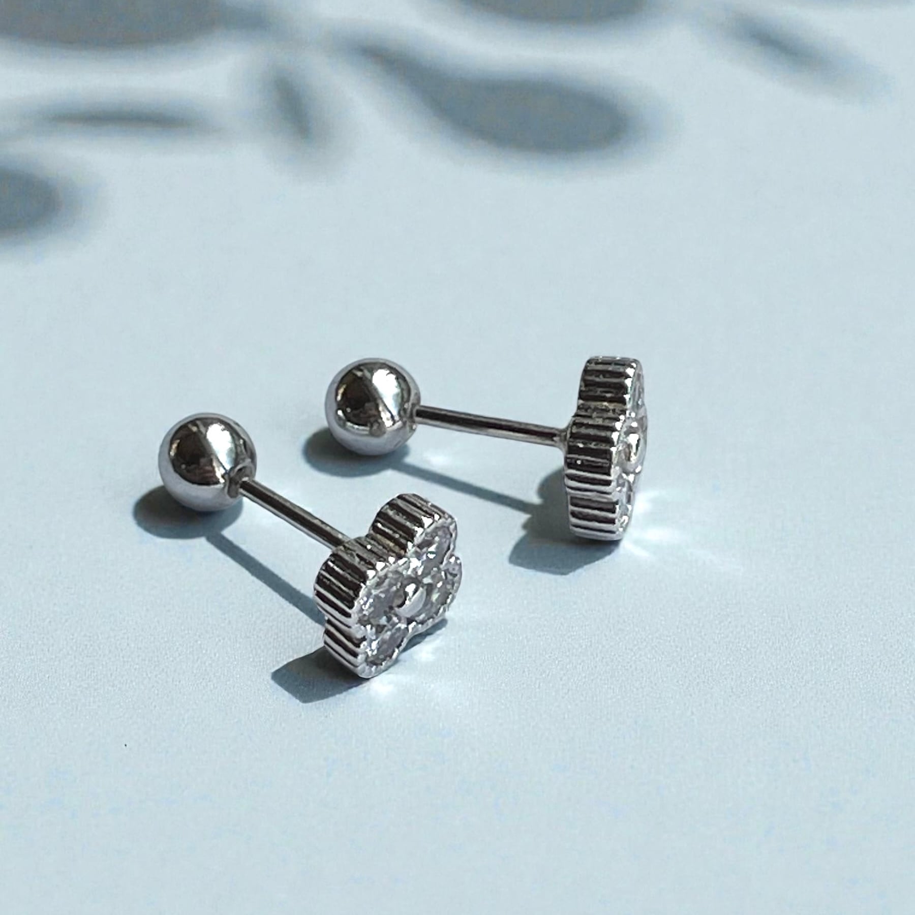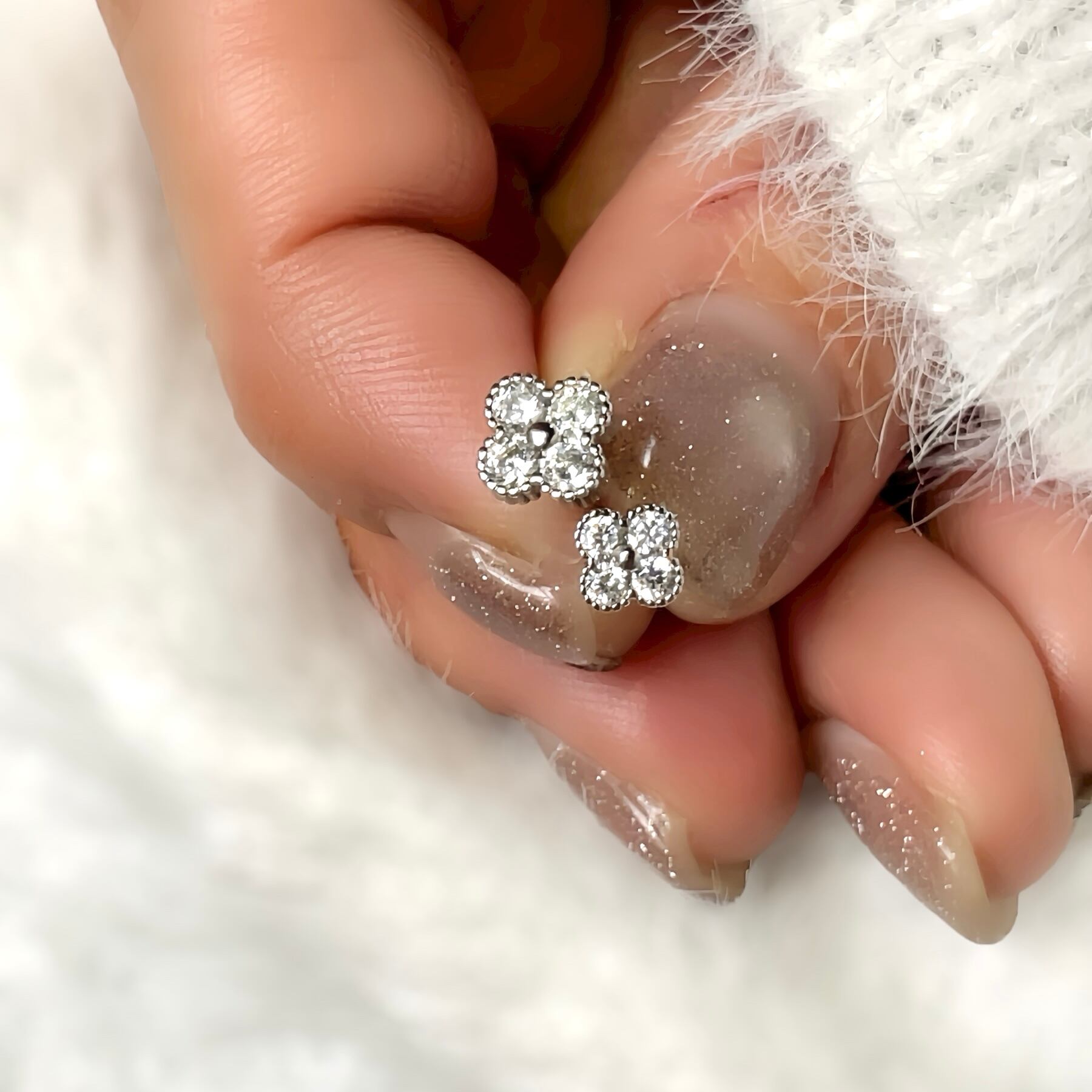 うる艶❤︎輝くCZダイヤ 四つ葉 フラワー ピアス ◇つけっぱなし♡OK 金属アレルギー対応 ステンレス