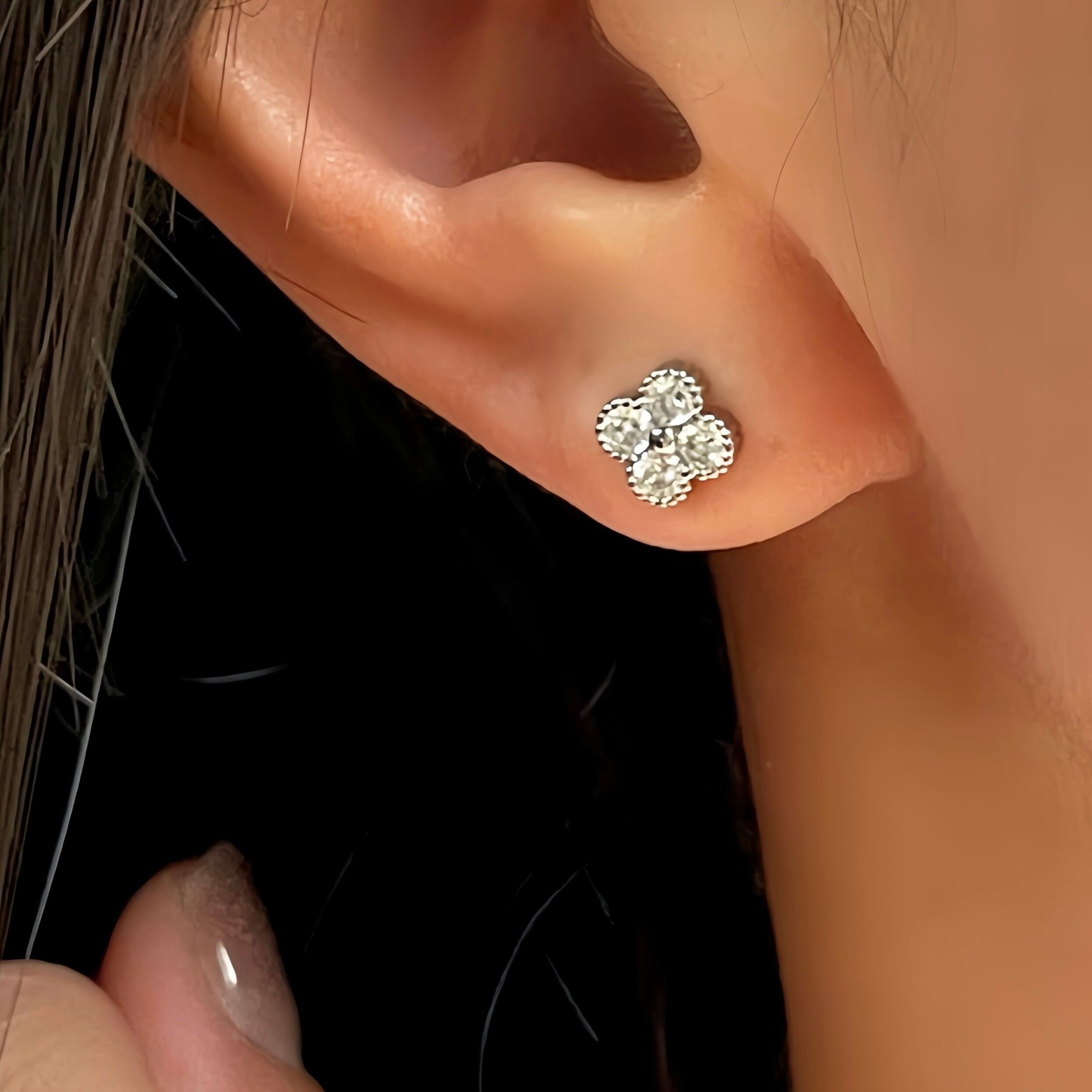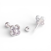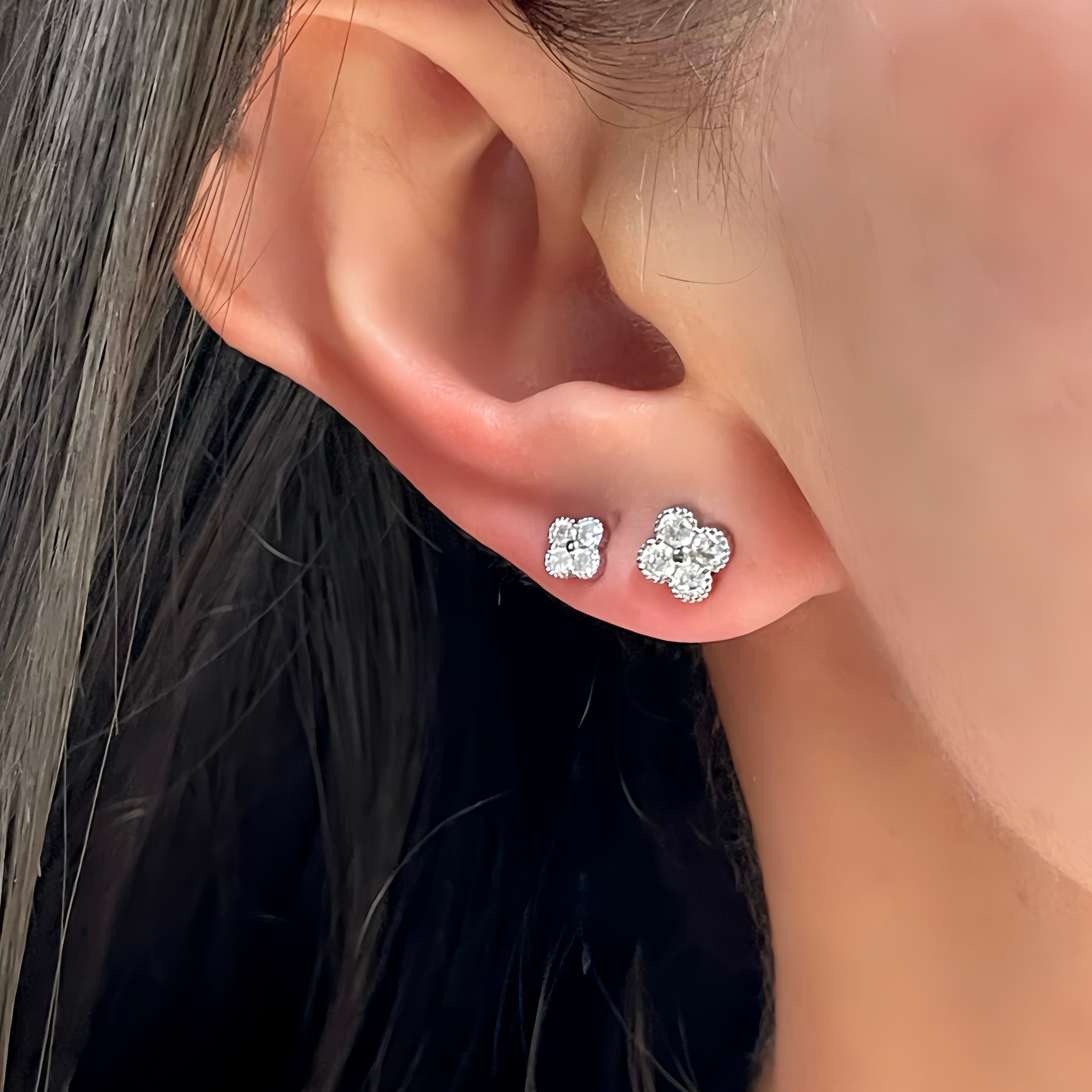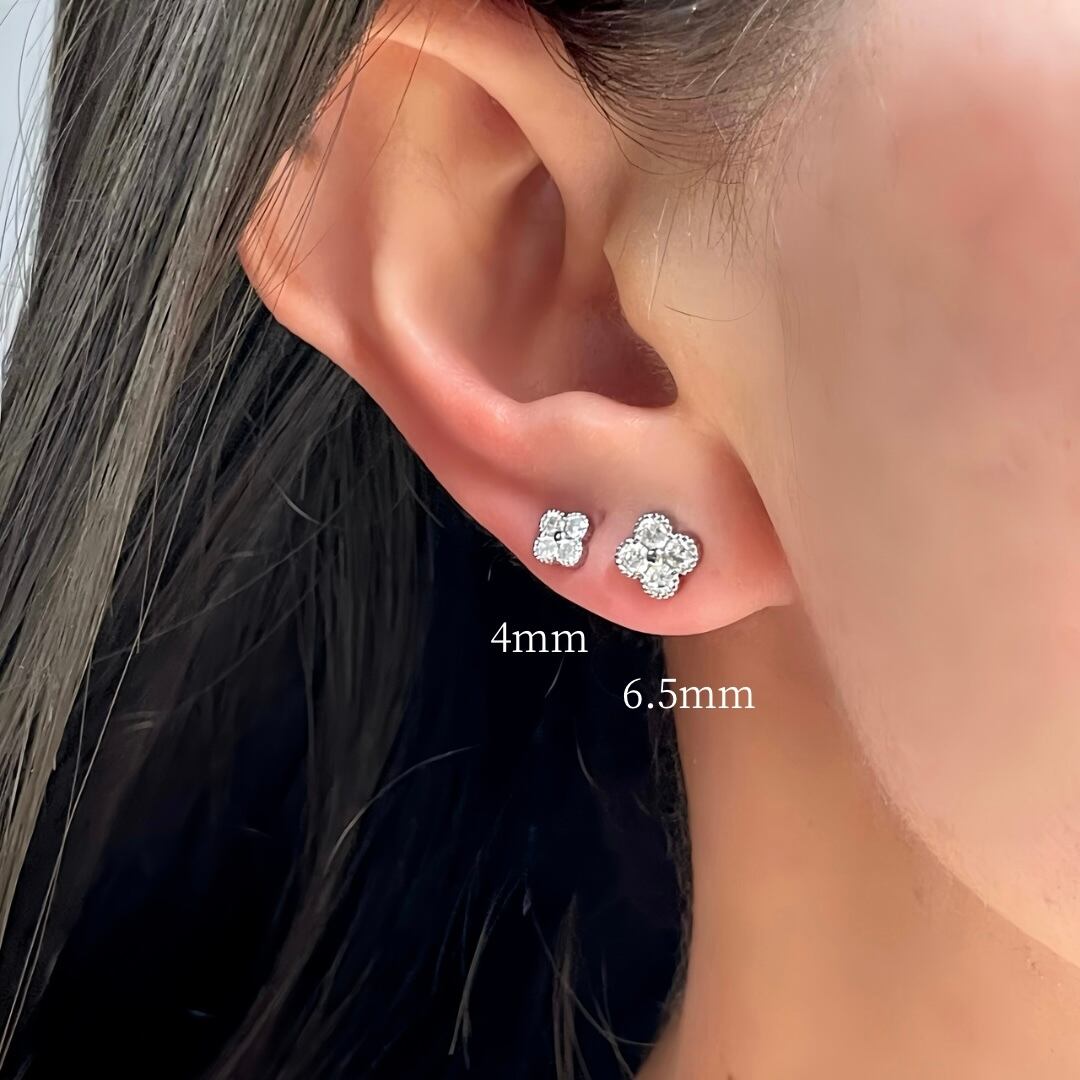 うる艶❤︎輝くCZダイヤ 四つ葉 フラワー ピアス ◇つけっぱなし♡OK 金属アレルギー対応 ステンレス