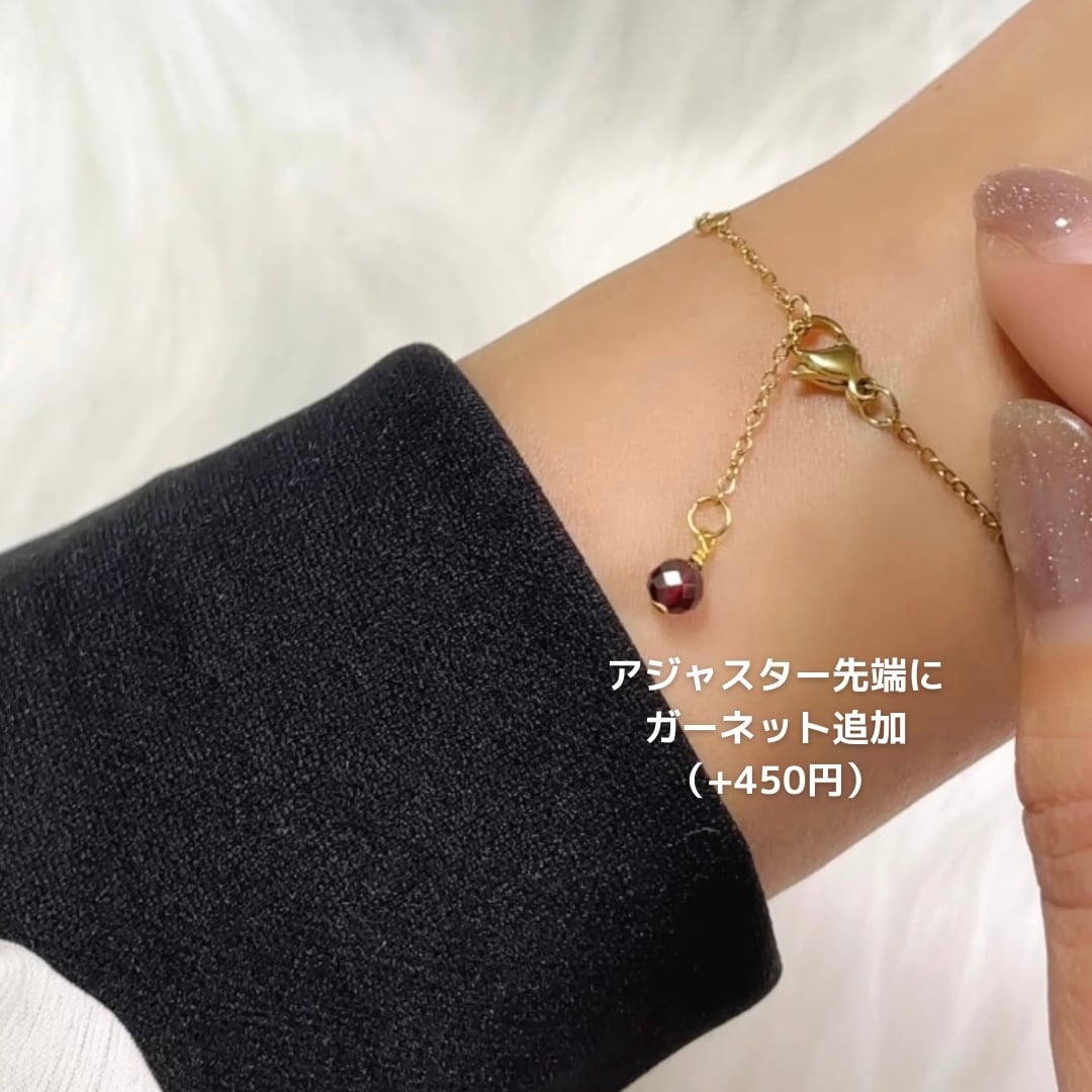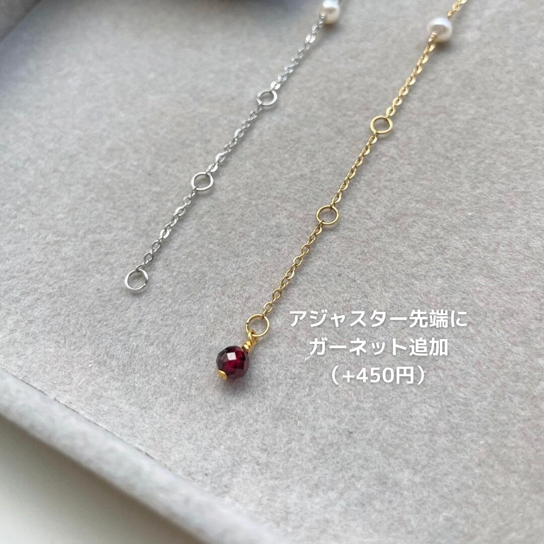 大人の誕生石アクセサリー◇ガーネット+淡水パール 華奢 ステーション チェーン ブレスレット◇金属アレルギー対応/誕生石/サージカルステンレス kiitos
