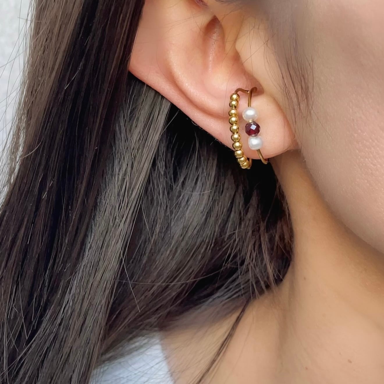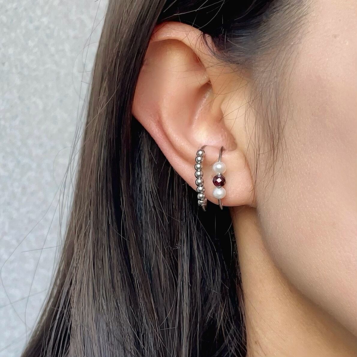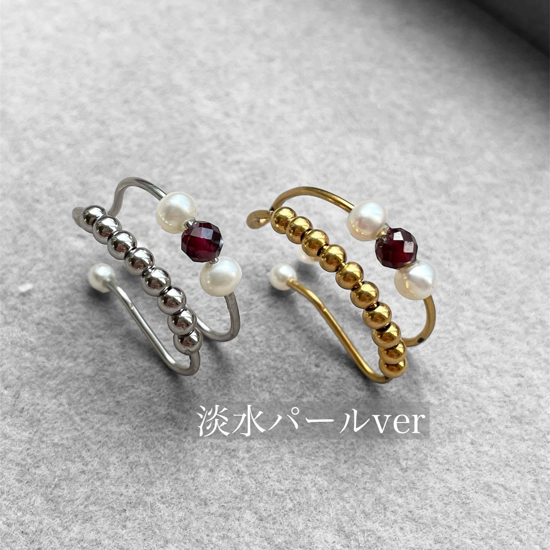 大人の 誕生石 イヤリング イヤーカフ◇ガーネット+淡水パール ◇ノンホールピアス 金属アレルギー対応