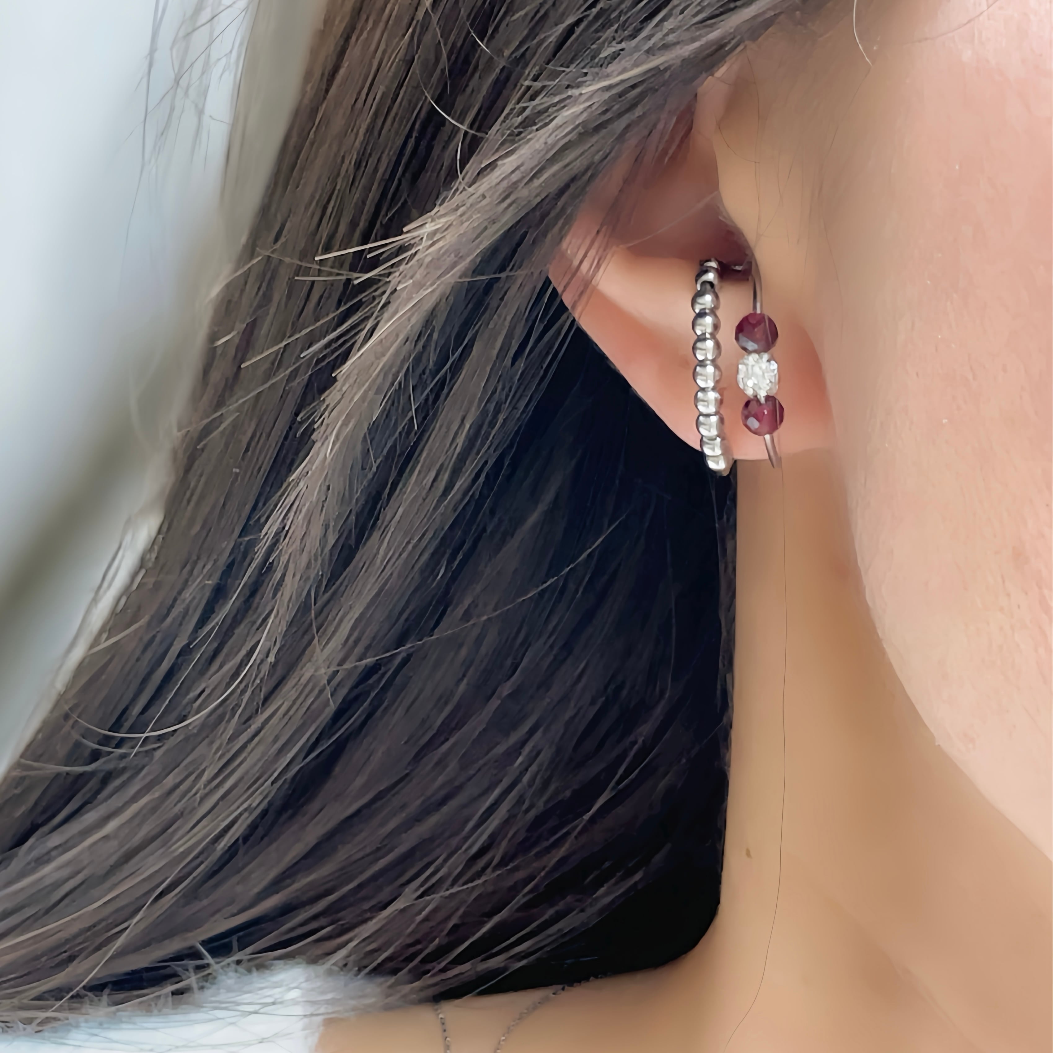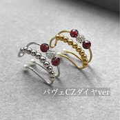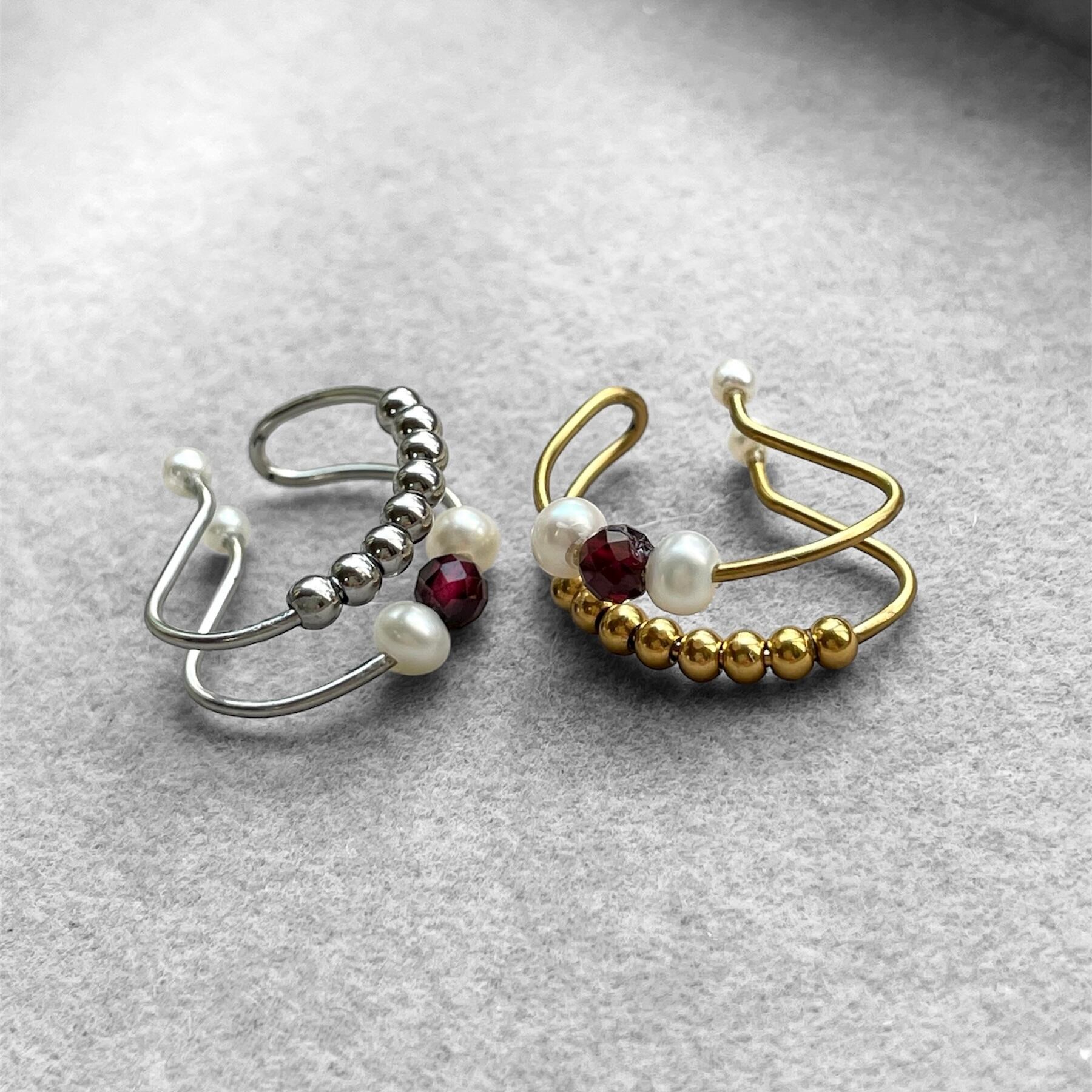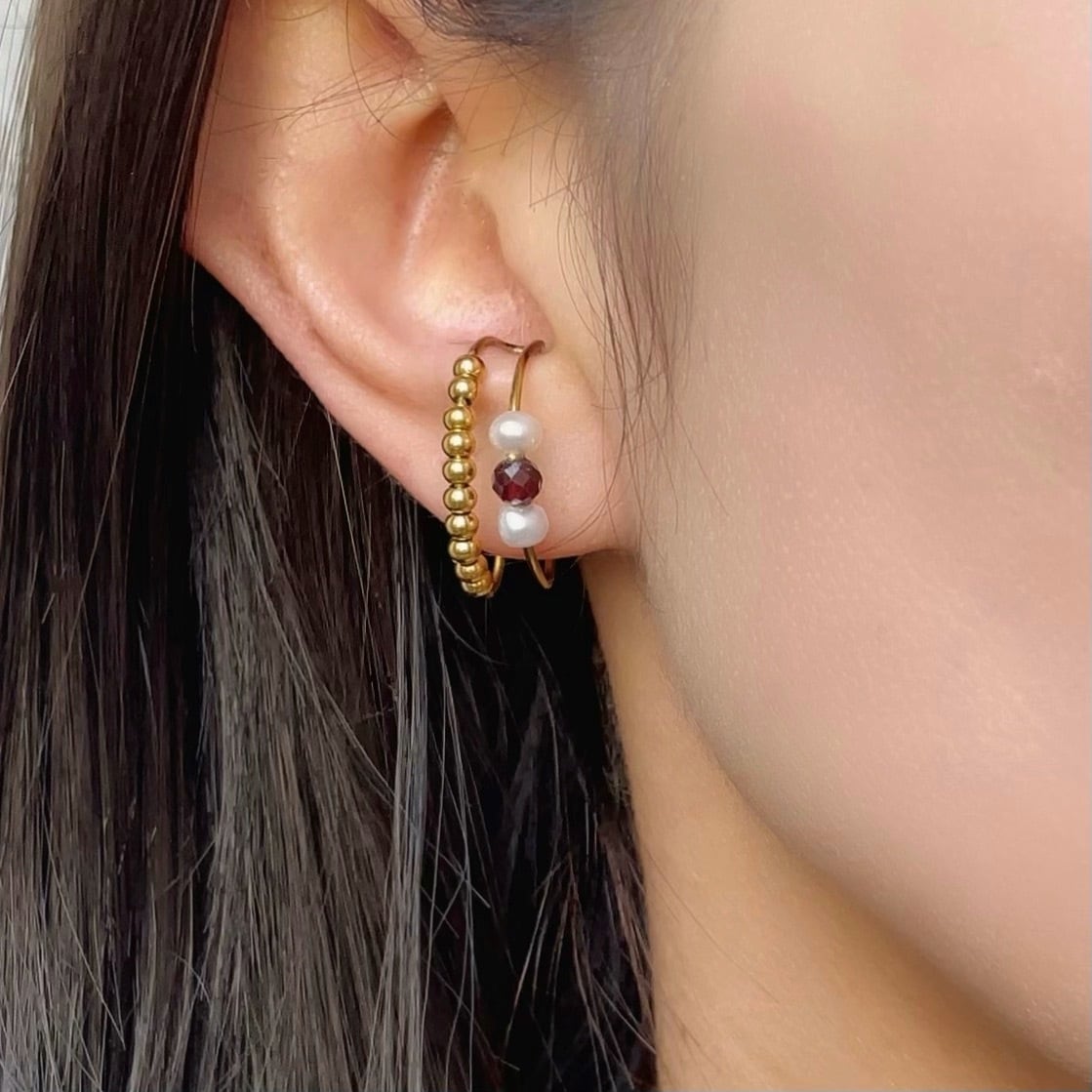 大人の 誕生石 イヤリング イヤーカフ◇ガーネット+淡水パール ◇ノンホールピアス 金属アレルギー対応