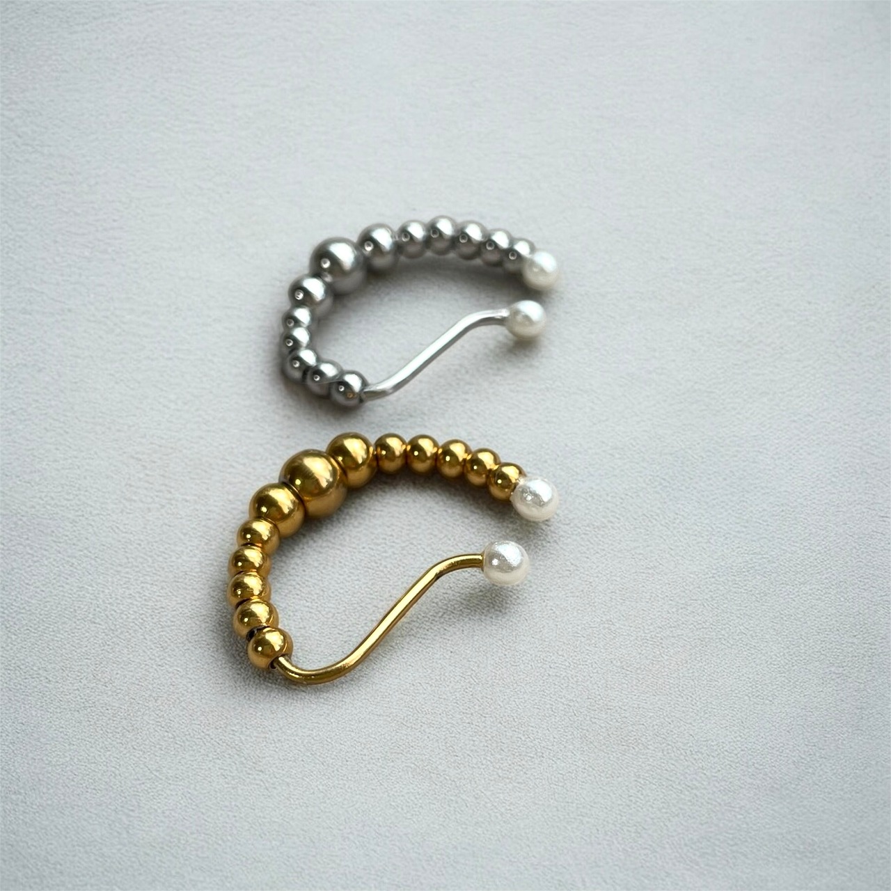 シンプル イヤリング イヤーカフ◇ラウンドボール◇ノンホールピアス 金属アレルギー対応 ステンレス
