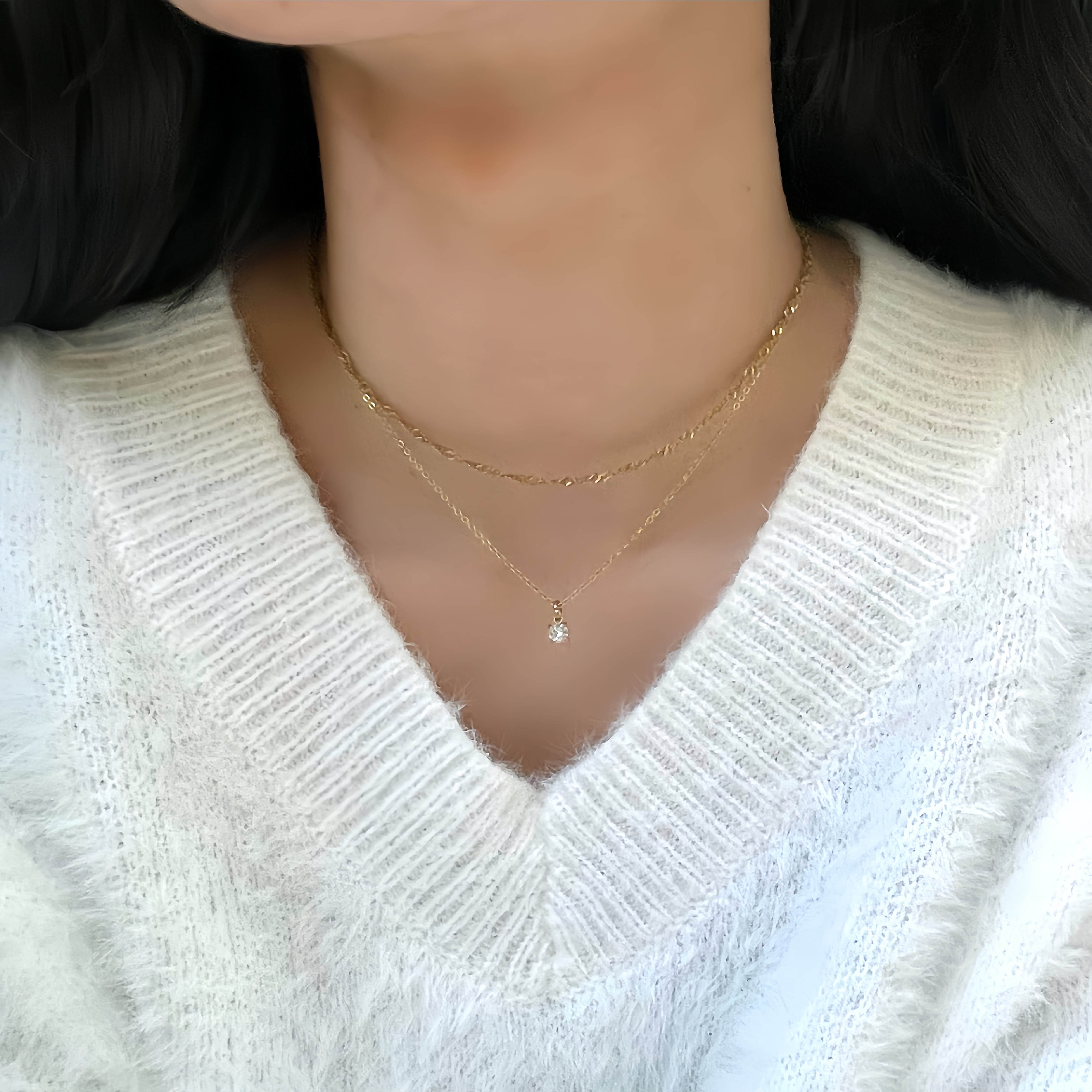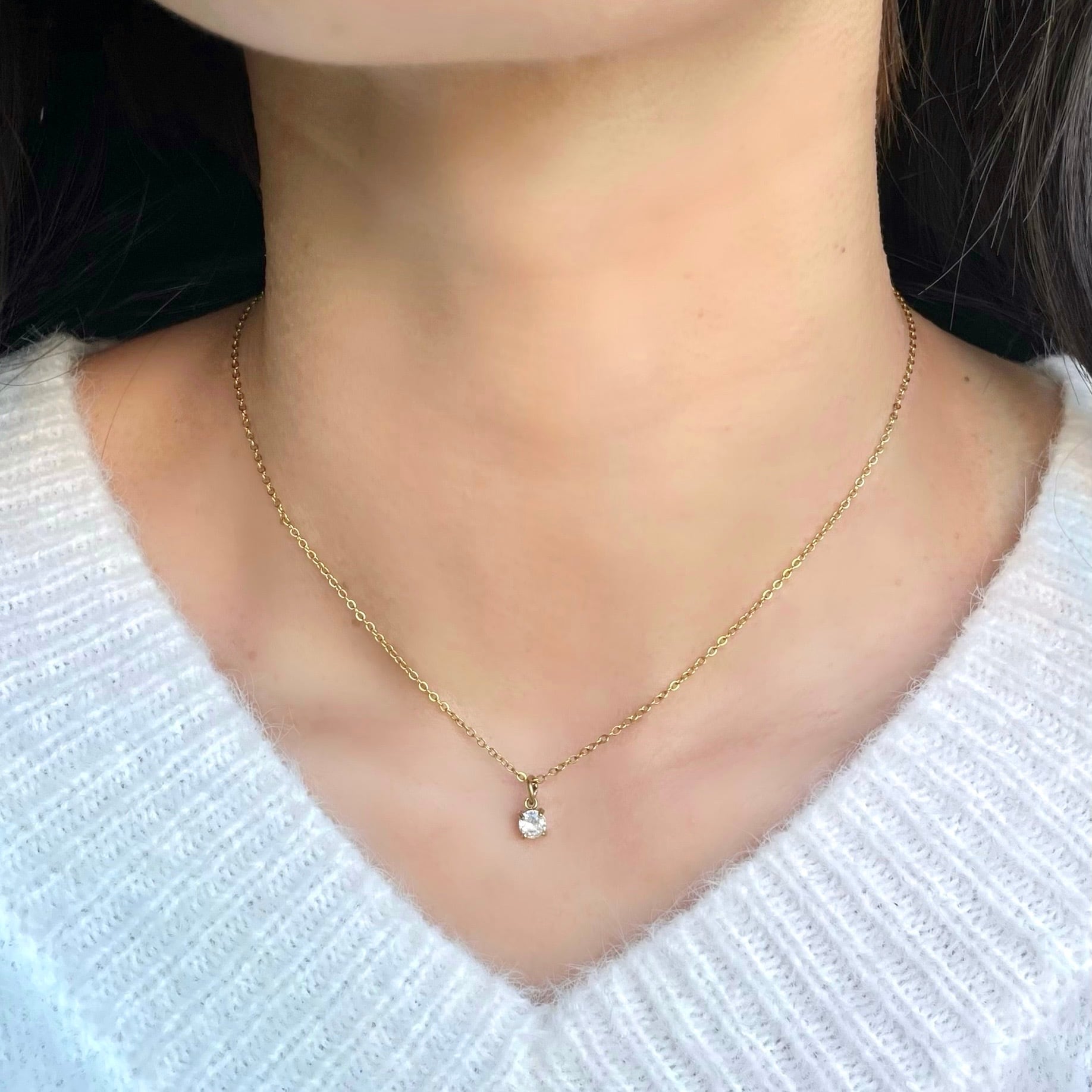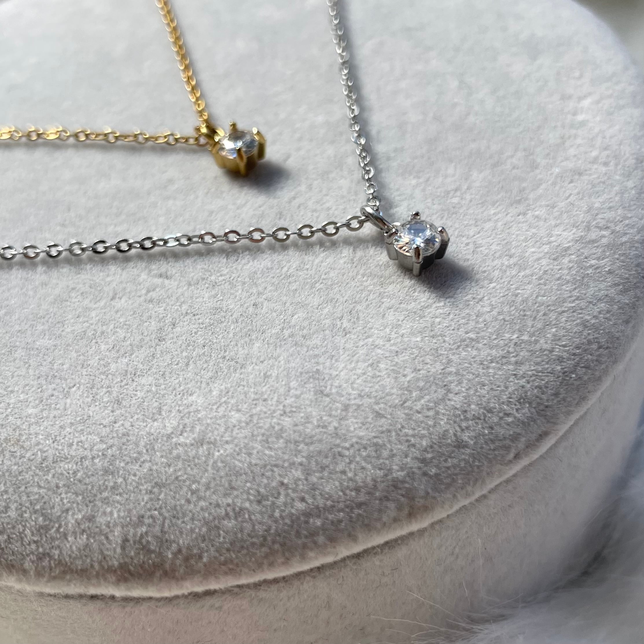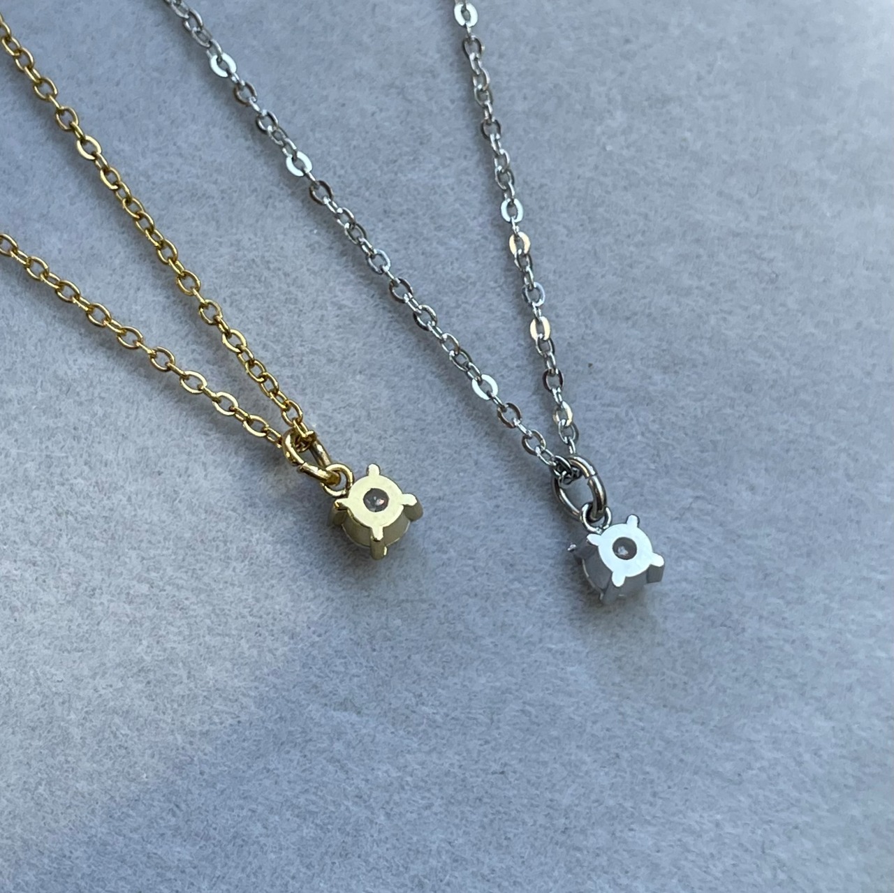 華奢&小さめ◇1粒 CZ ジルコニア ネックレス/金属アレルギー対応/ステンレス/つけっぱなし