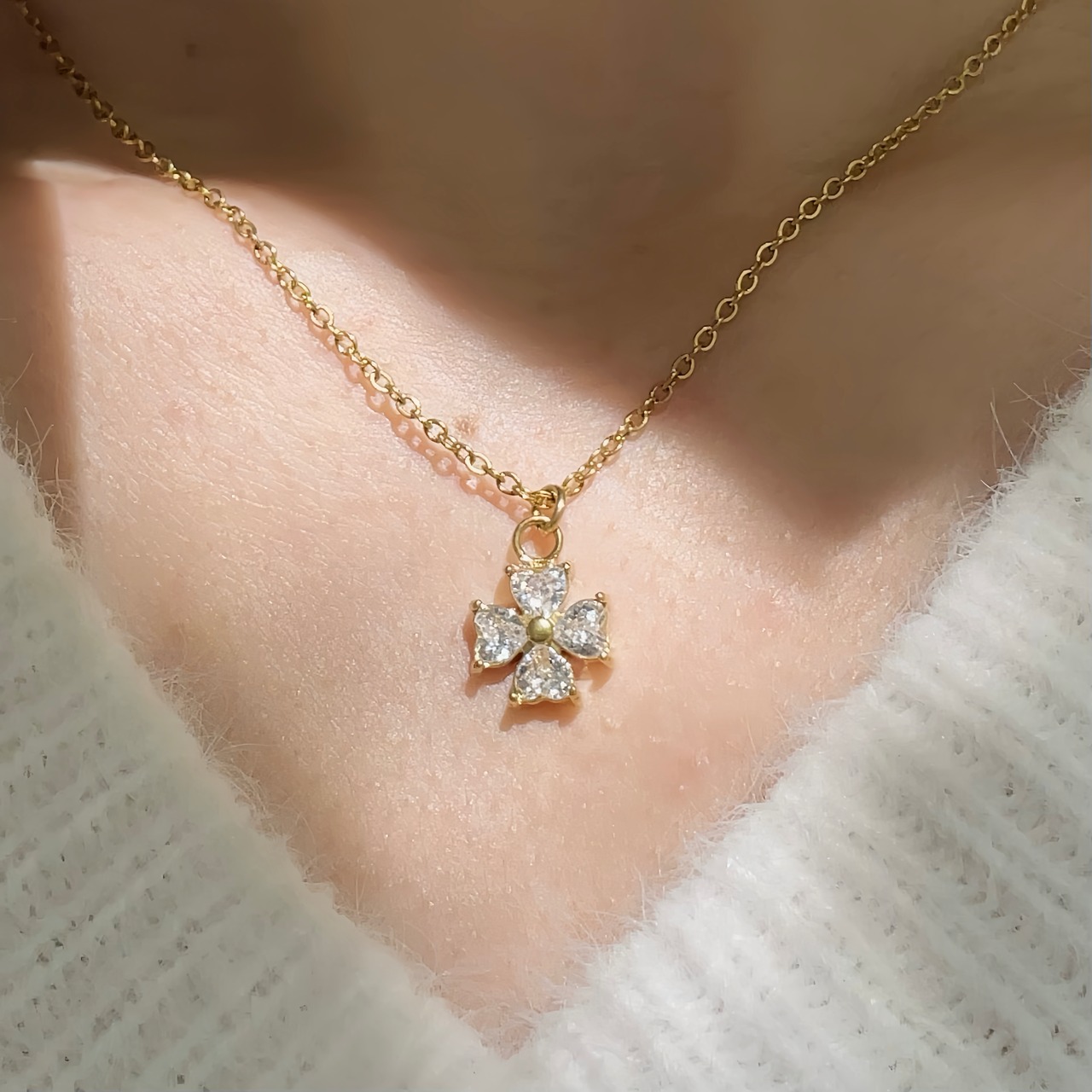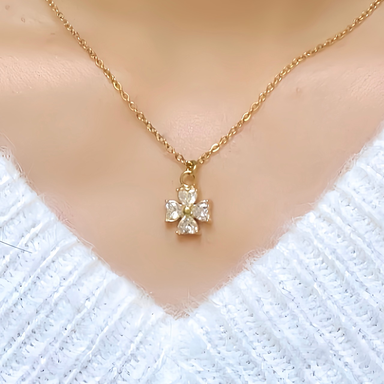 大人可愛い 輝く四つ葉ネックレス