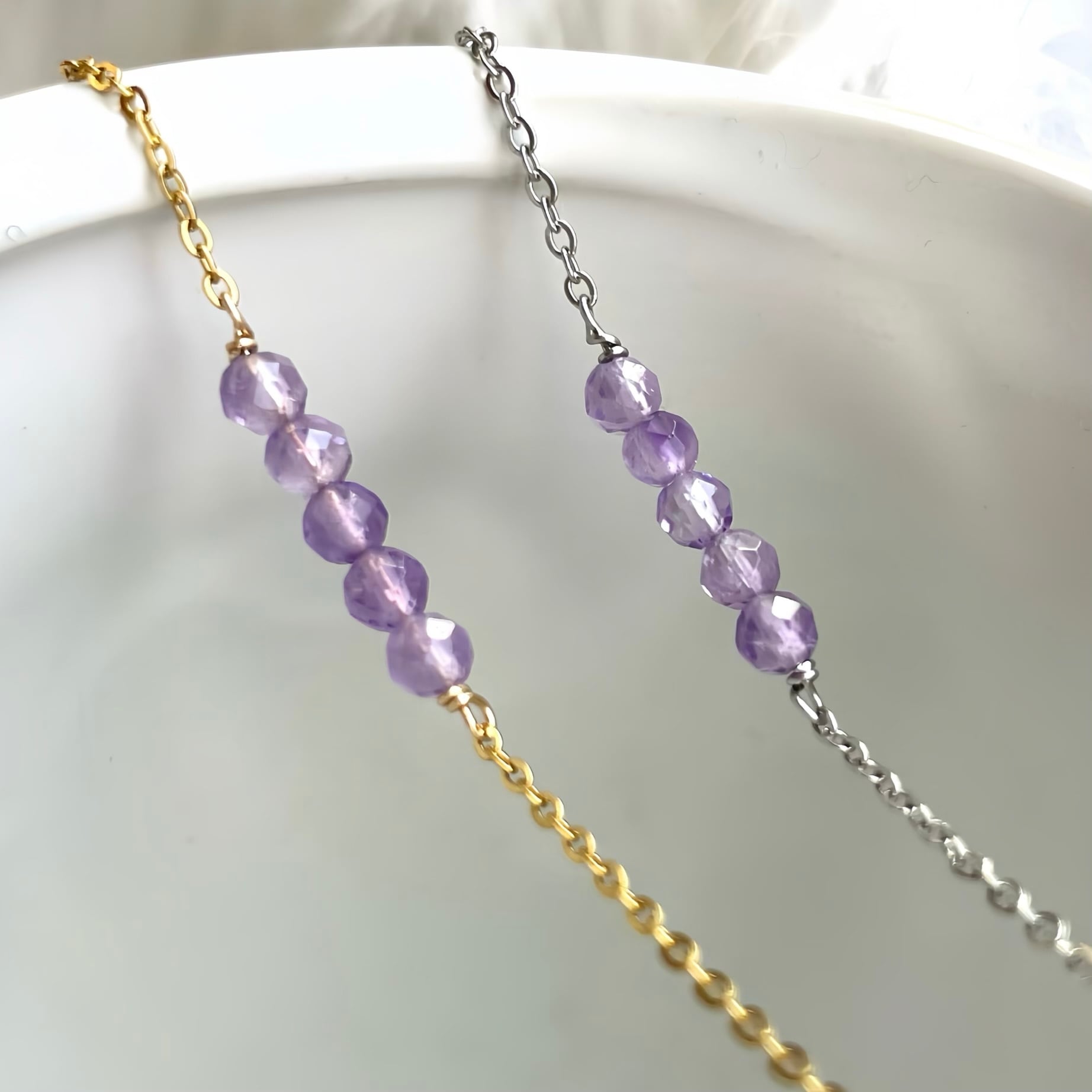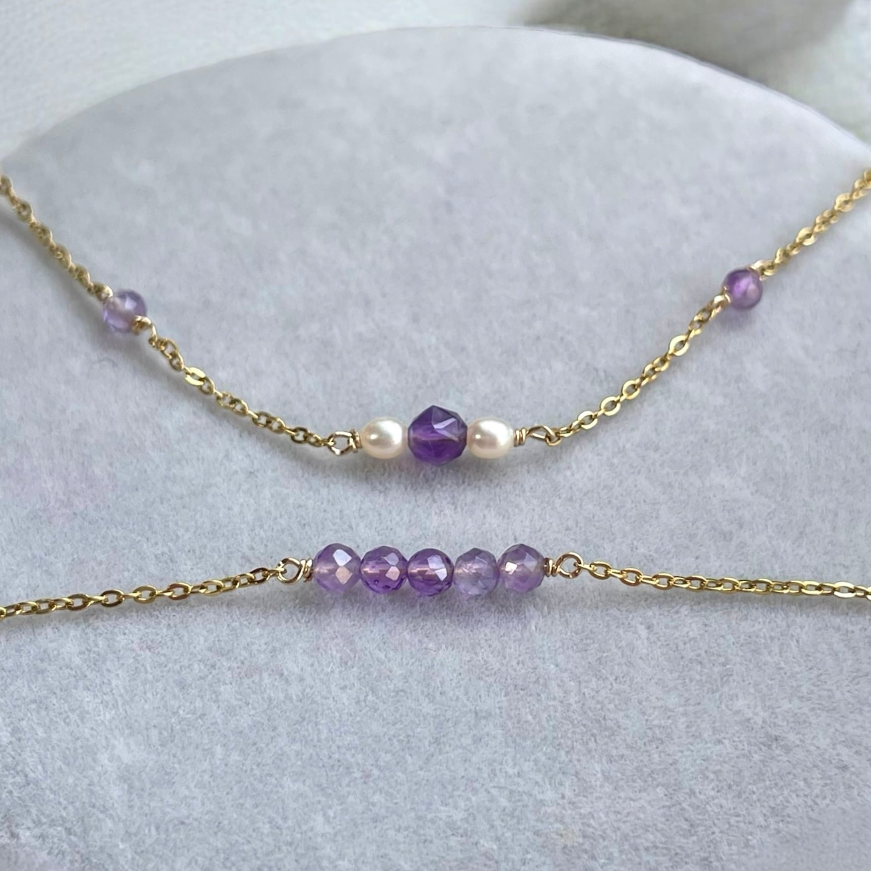 シンプルで華奢なアメジストネックレス