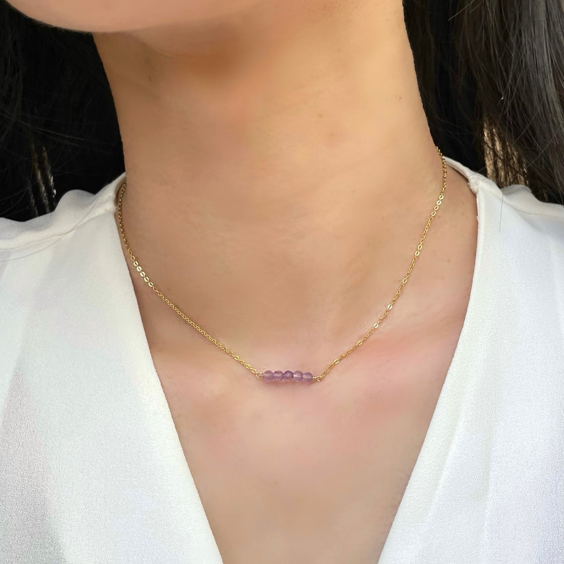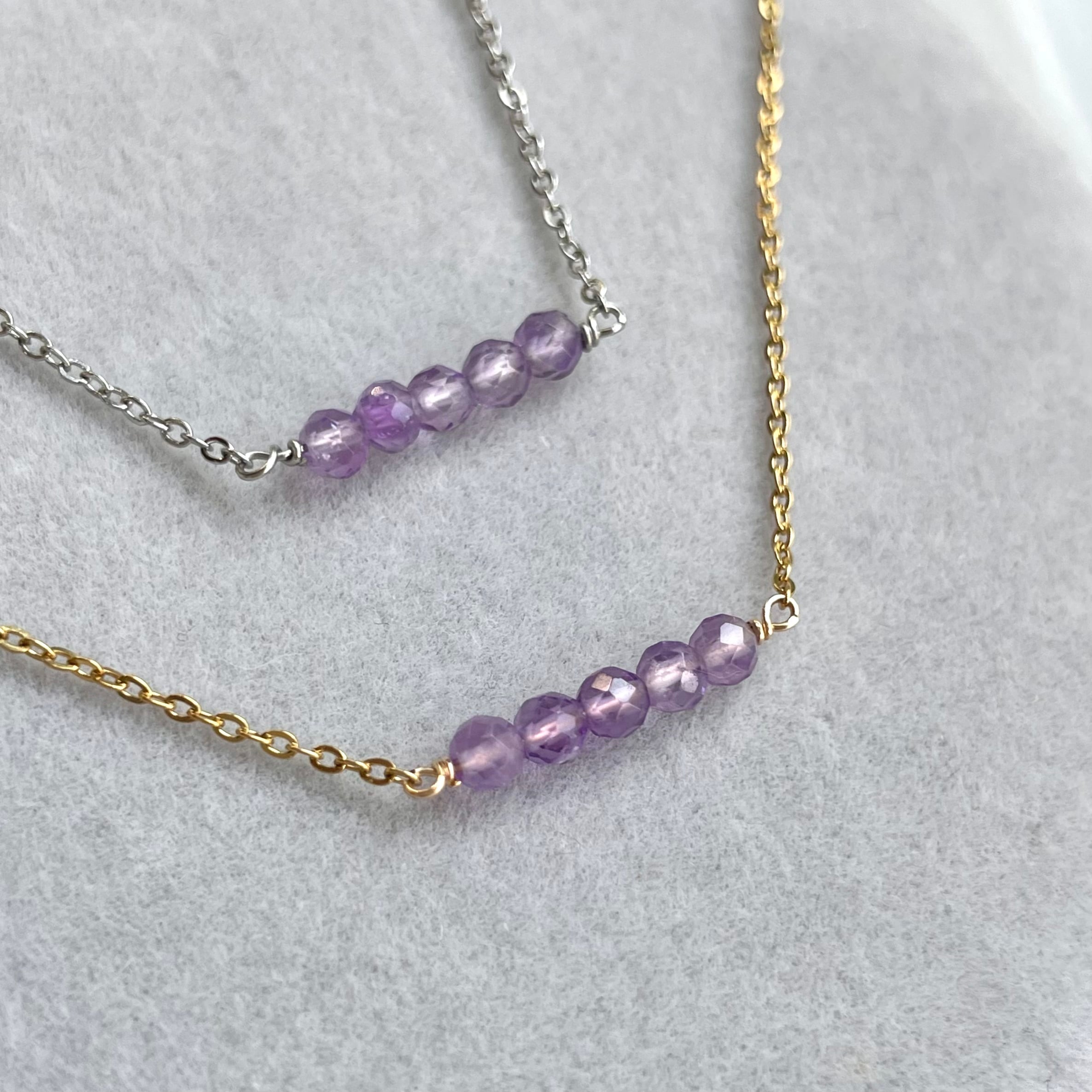 ラベンダーアメジスト 5粒 ネックレス◇誕生石アクセサリー/金属アレルギー対応/誕生石/サージカルステンレス