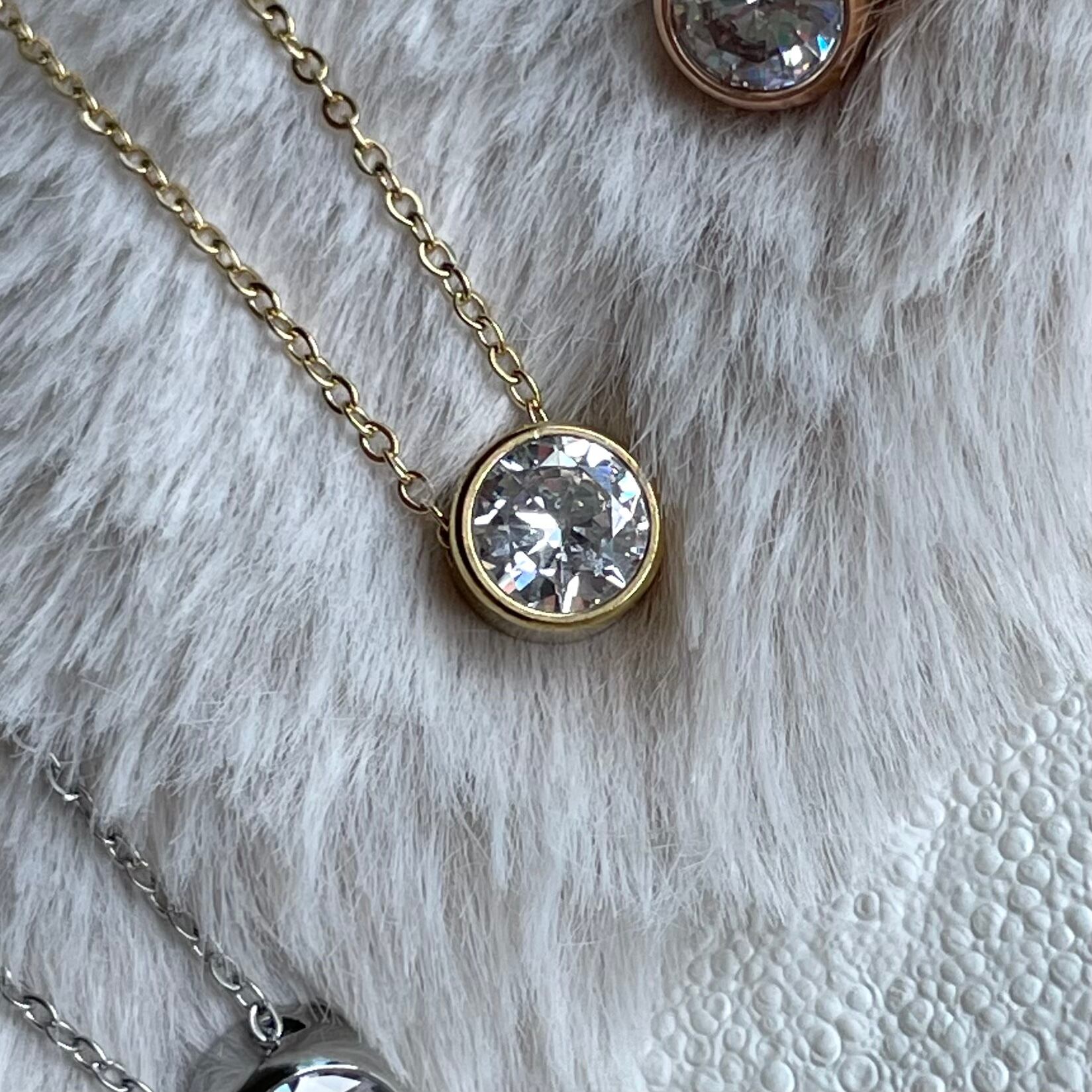 316L サージカルステンレス CZ ダイヤモンド 1粒 ネックレス kiitos