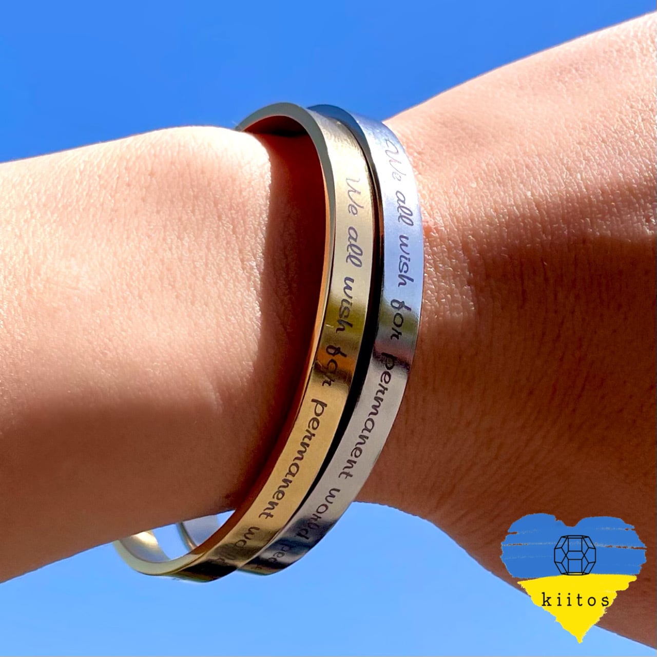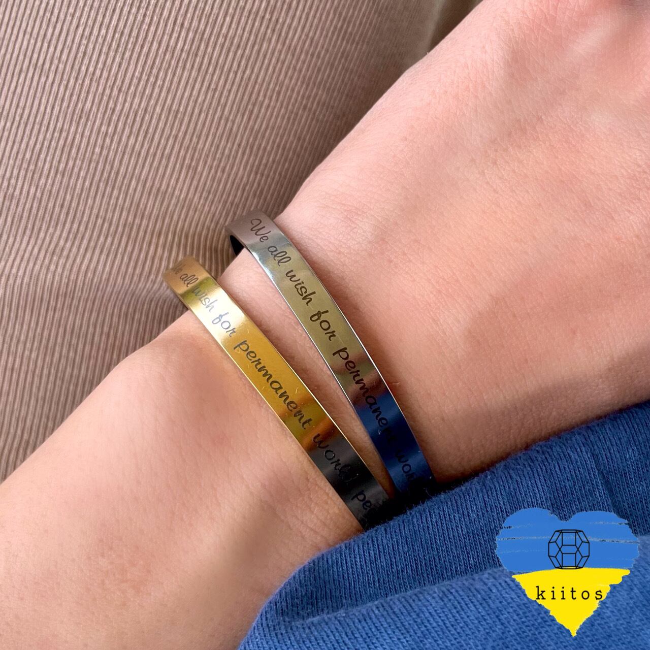 ◆支援型◆チャリティーアクセサリー 316L サージカルステンレス メッセージ バングル ウクライナ 支援