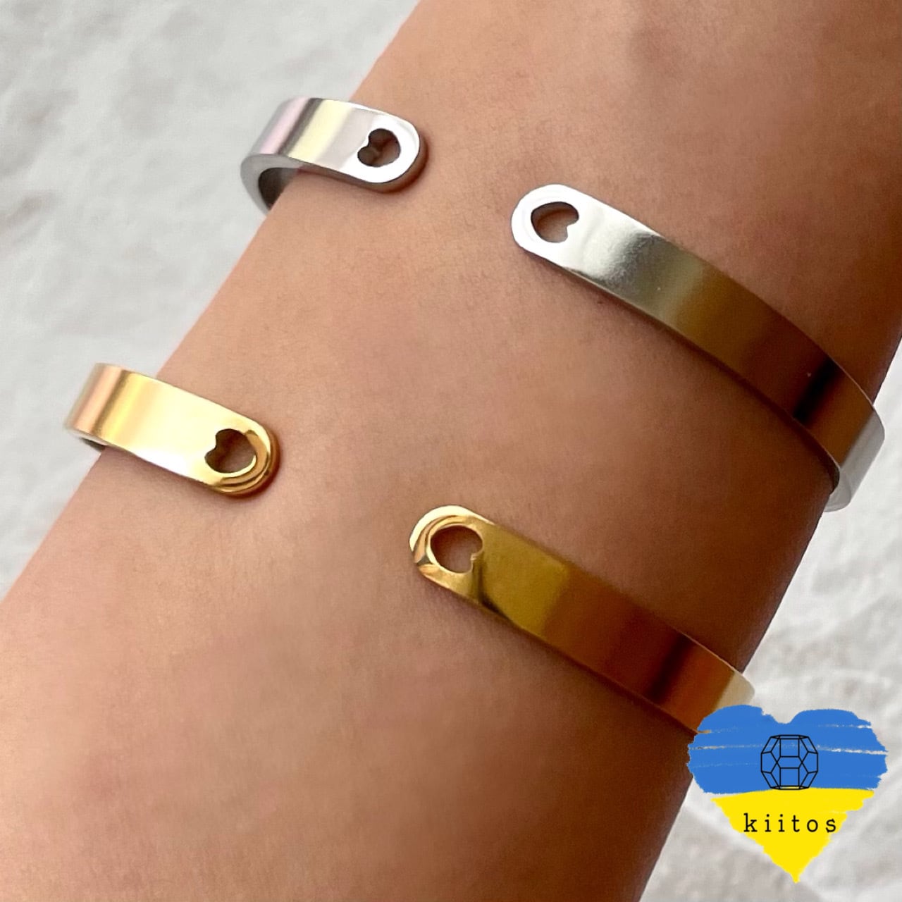 バングルの端にはハート型のくり抜き加工あり