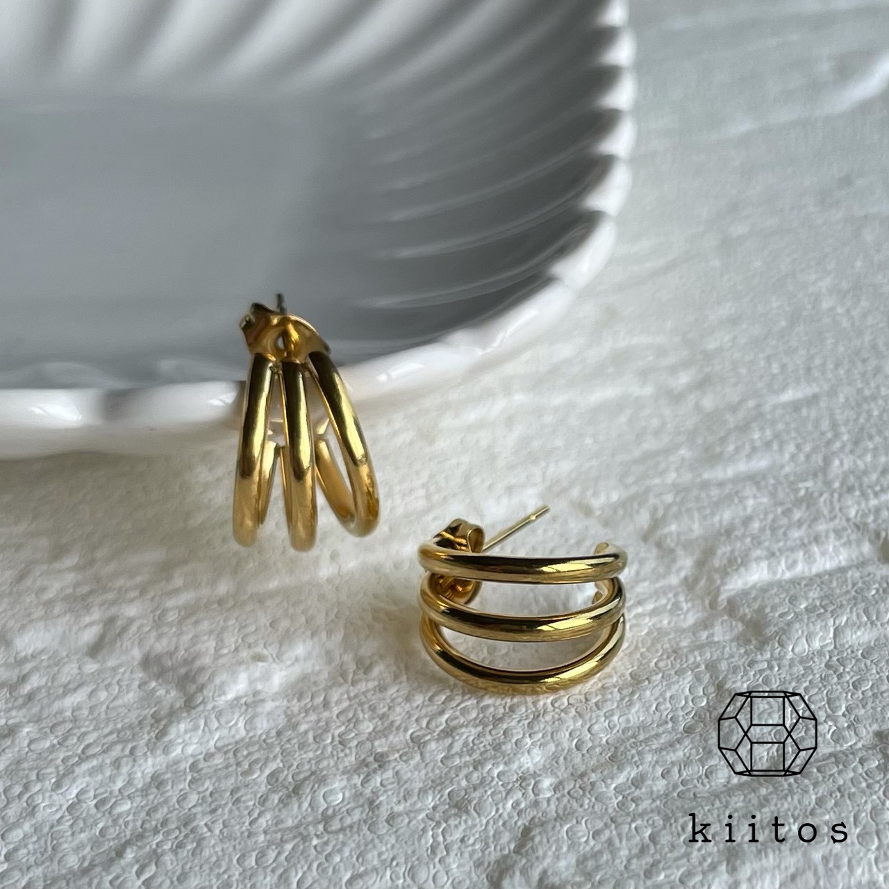 316L サージカルステンレス 3連 ミニフープピアス kiitos