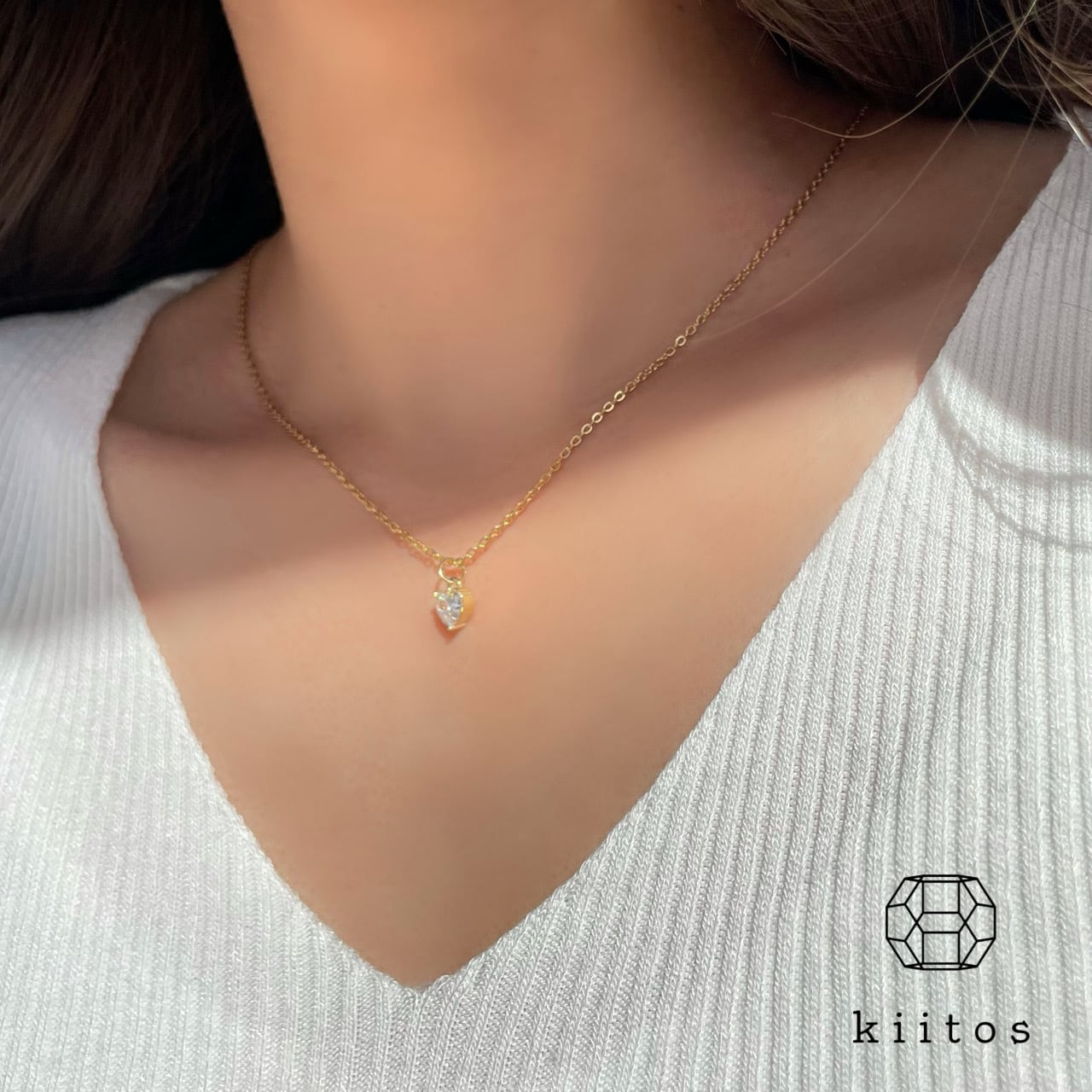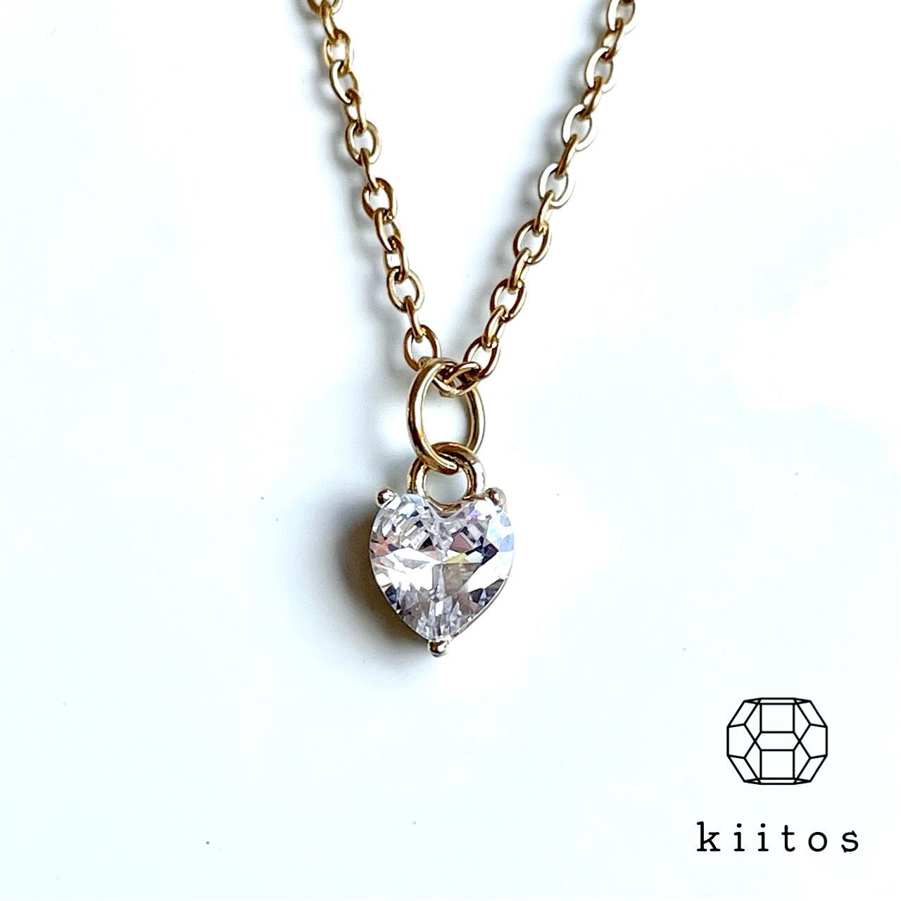 316L サージカルステンレス ハート CZ ダイヤモンド 1粒 ネックレス kiitos