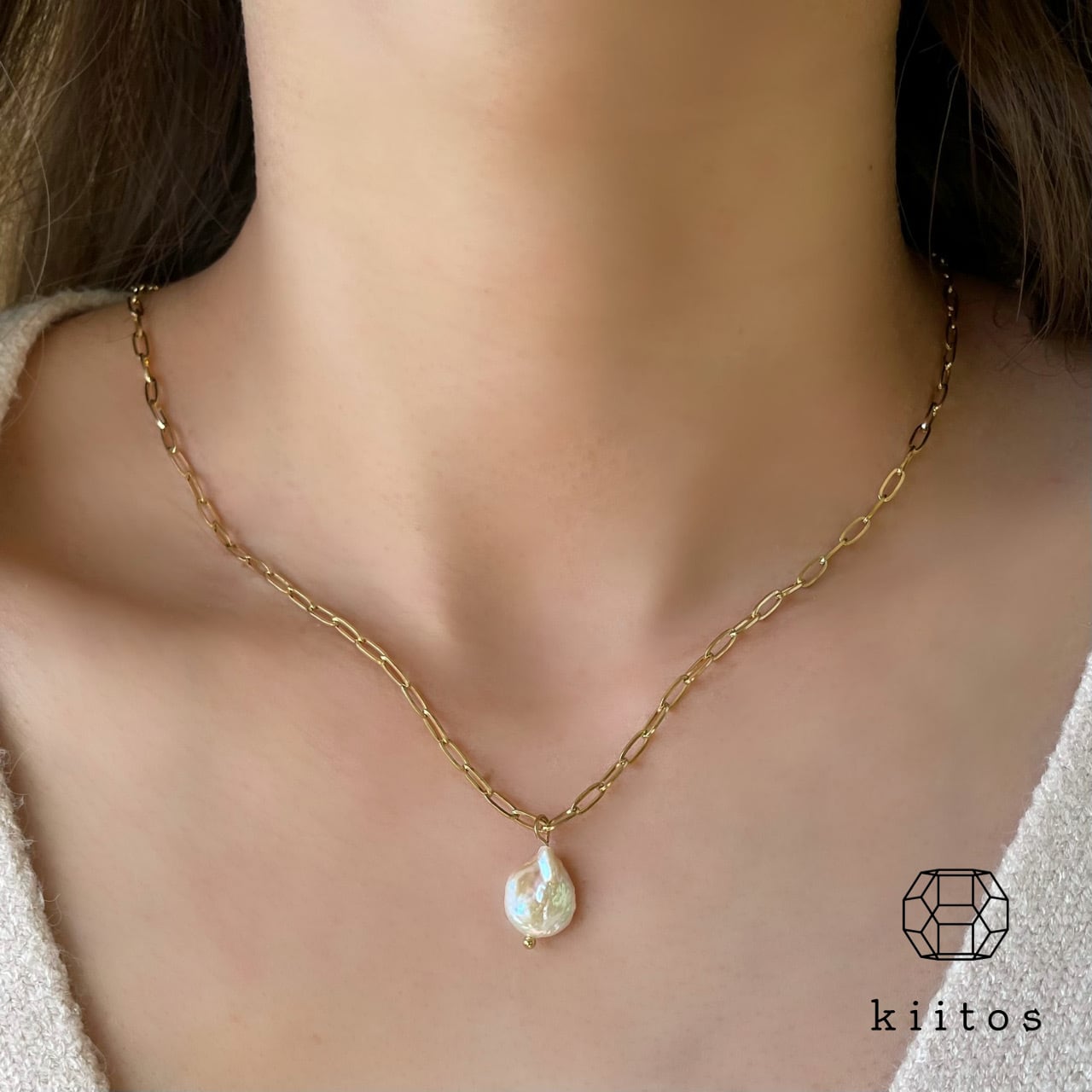 316L サージカルステンレス バロックパール オーバルチェーン ネックレス kiitos